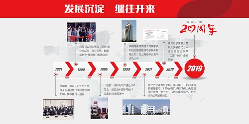 20年前,順應市場經濟的發展和要求,福日電子于19995月由福建福日集團公司控股設立并在上海證券交易所掛牌上市。基于公司的歷史、現狀及國家產業政策導向,通過持續不斷地資源整合、資產重組、結構調整,公司已從傳統電視機生產企業成功實現戰略轉型,形成了通訊及智慧家電、LED光電及綠能環保、內外貿供應鏈等三大主業。截止2018年底,公司總資產為76.35億元,主營業務收入為109.89億元,經濟實力、社會形象顯著提升。